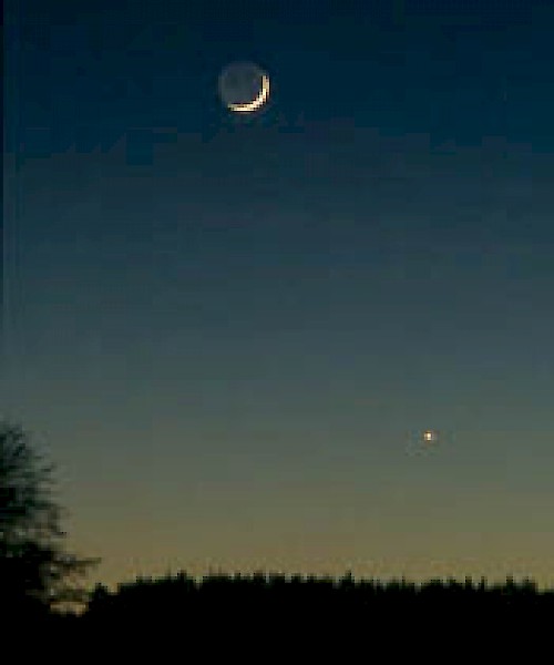18h55min: Erste Sichtbarkeit der zunehmenden Mondsichel, 39 h nach Neumond