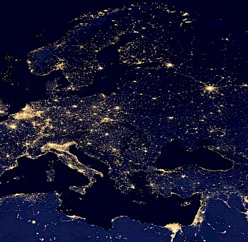 Abb. 1: Europa bei Nacht. Aus dem Weltall kann man deutlich die "Lichtverschmutzung" unseres Planeten; Quelle: NASA