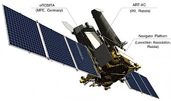 Abb. 1: Das Weltraumobservatorium Spektr-RG mit den Röntgenteleskopen eROSITA und ART-XC. [Roskosmos]