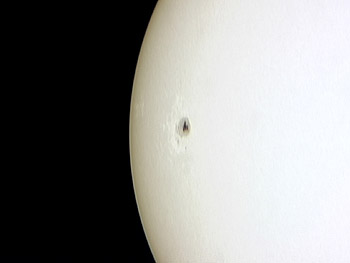 Sonnenfleck am 27. April 2007, aufgenommen mit einem Refraktor mit 45 mm Öffnung und einer Webcam ToUCam Pro II.