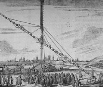 Hevel's größtes Fernrohr vor den Toren von Danzig. Abbildung aus seinem Werk "MachinaeCoelestis" (1673)