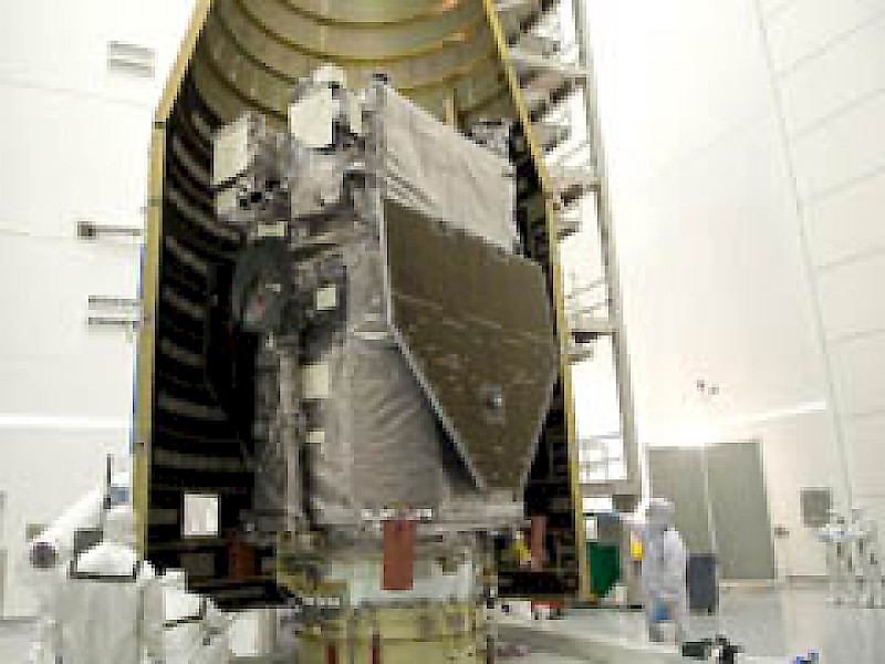 Abbildung 1: Der 4,5 Meter große Satellit SDO in der Hülle einer Atlas V Rakete.