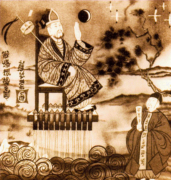 Abb. 1: Der legendäre Mandarin Wan Hu und sein Himmelsgefährt