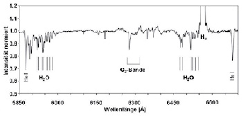 Allgemeines Erscheinungsbild Atmosphärische Linien verraten sich in hochaufgelösten Spektren dadurch, dass sie im Gegensatz zu den Linien der Sternatmosphären nahezu unverbreitert und demzufolge sehr scharf und stark absorbierend sind. Die zur Verbreiterung notwendigen physikalischen Bedingungen fehlen in der Erdatmosphäre. Allerdings werden die Linien mit abnehmender Auflösung des Spektrographen immer mehr "verwaschen" und erscheinen demzufolge entsprechend breiter und weniger tief. Auch wenn sie bei niedriger Auflösung kaum oder gar nicht mehr erkennbar sind, bleibt ihr Einfluss auf das Sternspektrum erhalten.