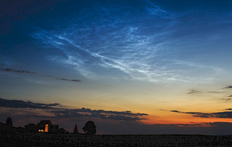 Abb. 2: Im Sommer lassen sich leuchtende Nachtwolken beobachten. Hier z.B. in Radebeul-Wahnsdorf am 3.7.2021 um 22:44 Uhr. Foto Heiko Ulbricht