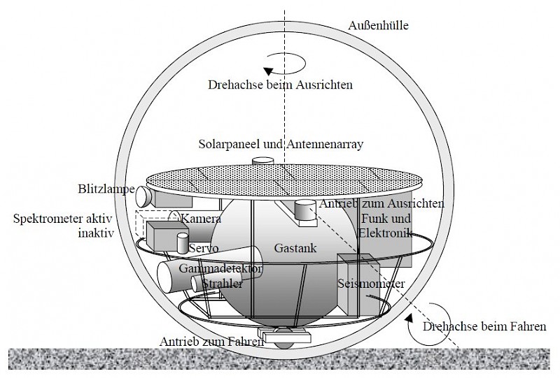 Zum Schutz gegen den Druck und die beim Abstieg zu passierende korrosive Wolkenschicht aus Schwefelsäure darf die technische Ausrüstung mit der Umgebung nicht in direkten Kontakt kommen. Für die vorgesehenen Messungen ist dies auch nicht erforderlich. Seismische Erschütterungen sind im abgeschlossenen Raum messbar, chemische Analyse kann durch Spektroskopie berührungsfrei durchgeführt werden. Durch eine durchsichtige Außenhülle hindurch kann eine Kamera Bilder liefern. Der Antrieb wird nach innen verlegt, indem der ganze Instrumententräger von innen auf einer kugelförmigen Hülle fährt und diese so ins Rollen versetzt. Bei allen Komponenten ist darauf zu achten, dass sie bei einer Umgebungstemperatur von 450 °C (durch die Wärmeentwicklung der Instrumente voraussichtlich etwas höher) funktionsfähig bleiben.